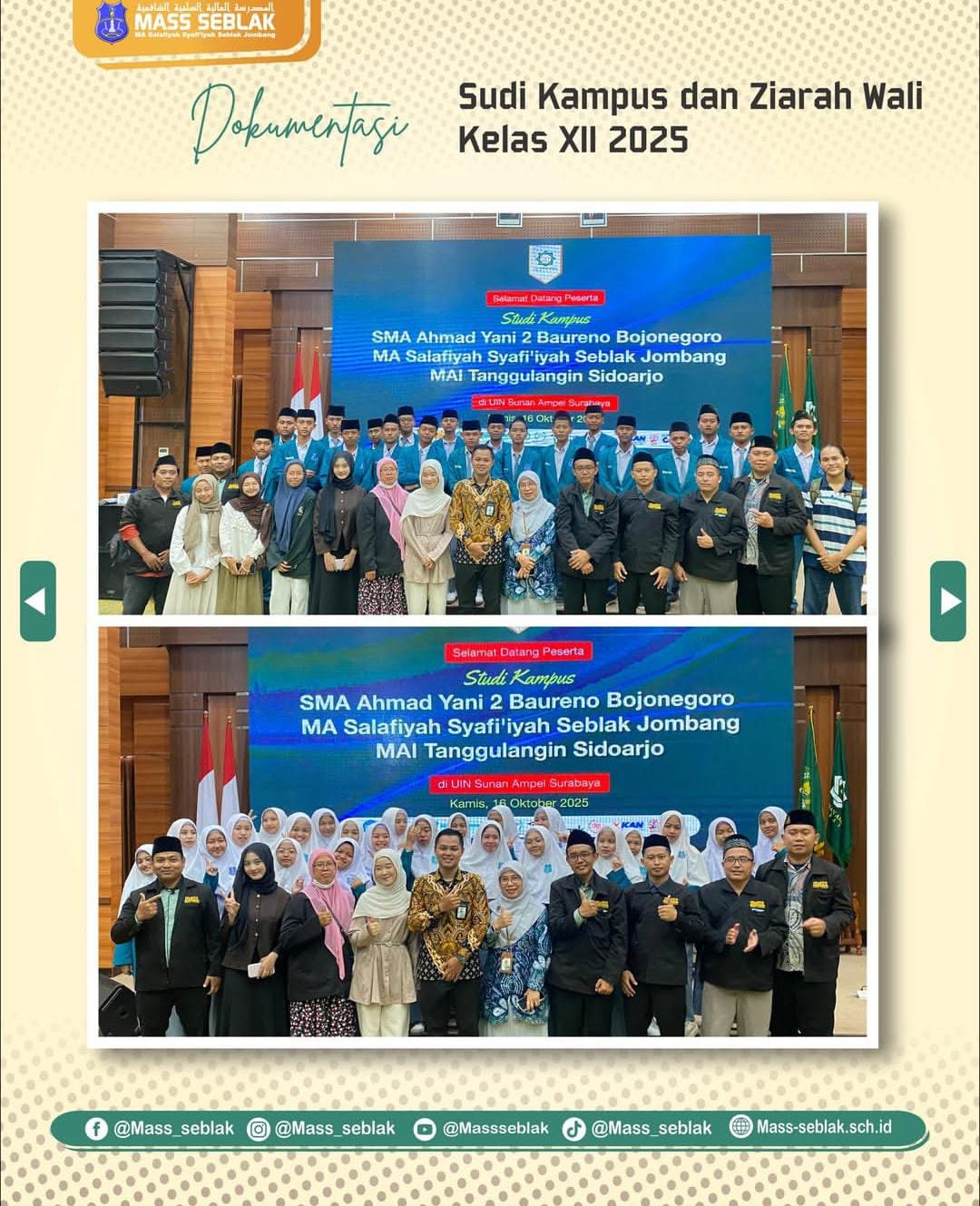 Rangkaian kegiatan “Studi Kampus dan Ziarah Wali Kelas XII Angkatan 2025” Madrasah Aliyah Salafiyah Syafiiyah Seblak bukan hanya perjalanan fisik, melainkan sebuah ziarah intelektual dan spiritual bagi para siswa di akhir masa studi mereka. Kegiatan ini dirancang untuk membuka cakrawala masa depan sekaligus membumikan nilai-nilai historis keagamaan.